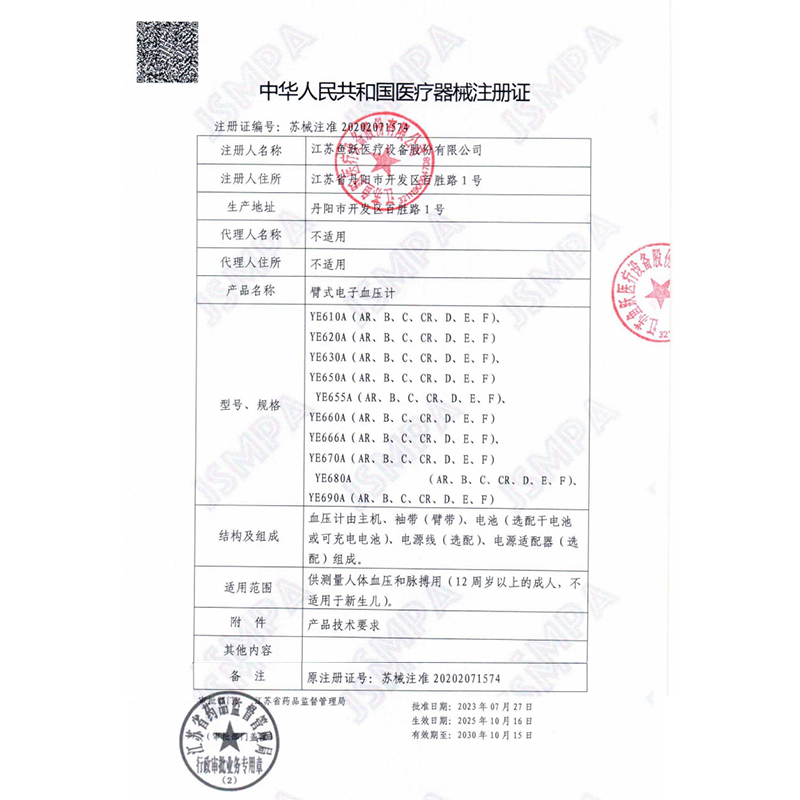 生产企业:江苏鱼跃医疗设备股份有限公司