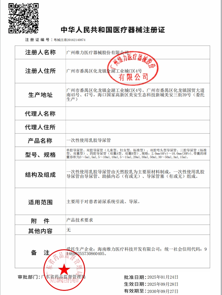 维力 一次性使用无菌硅胶导尿管 双腔导尿管