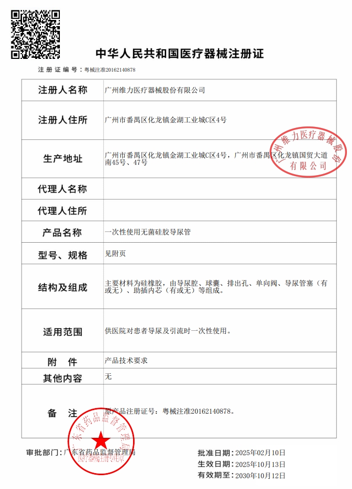 维力 一次性使用无菌硅胶导尿管 双腔导尿管