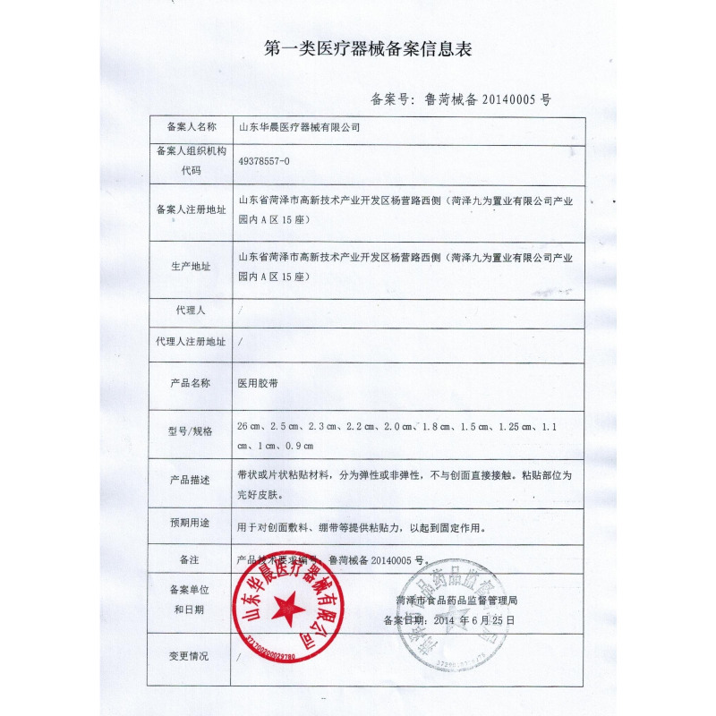 鲁菏械备20140005号